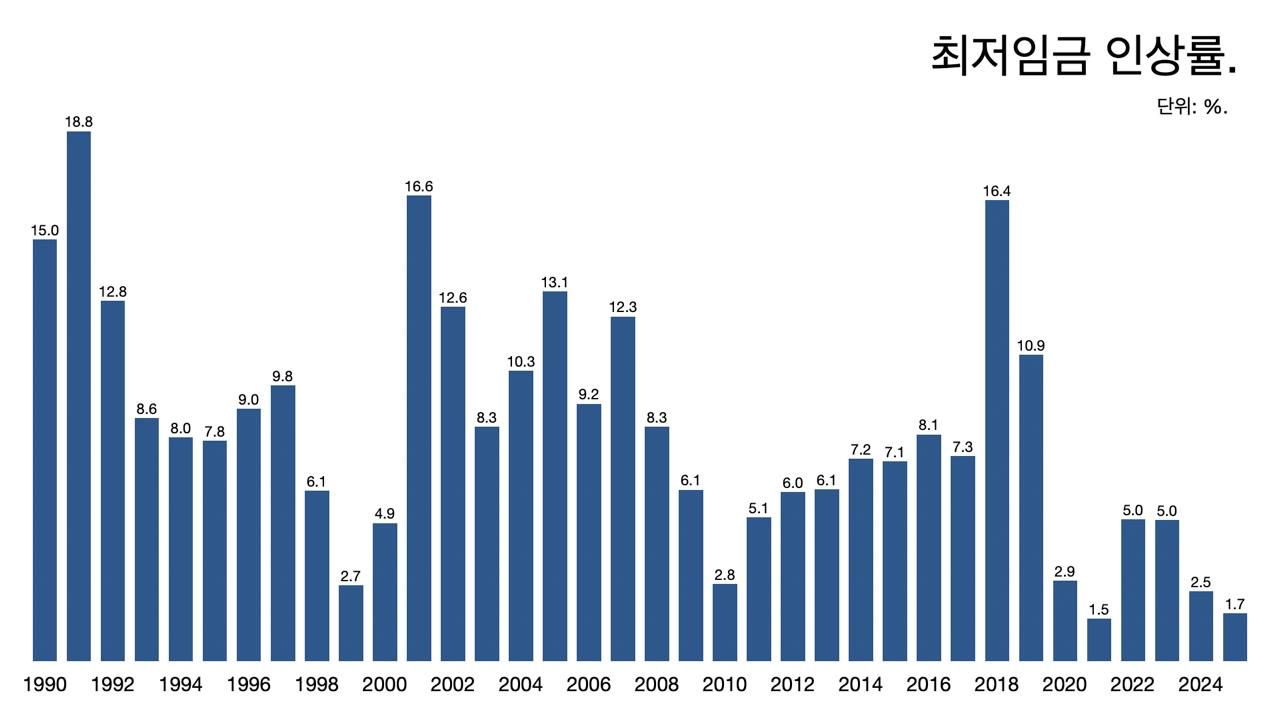 - 최저임금 인상률도 역대 두 번째로 낮았다.