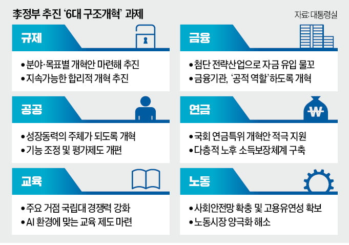 규제·금융·공공·연금·교육·노동 개혁 추진