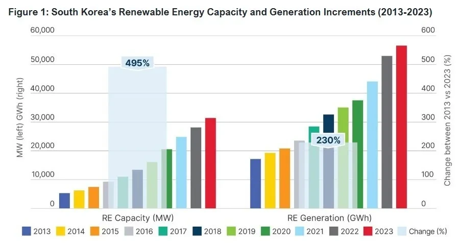 보고서는 이처럼 우리나라에서 재생에너지 확대가 지지부진한 구조적인 원인을 세 가지 요소로부터 찾았다. 한국전력공사 자료를 보면, 우리나라 재생에너지 설비용량은 2013년부터 2023년 사이 6배 증가한 반면, 같은 기간 재생에너지 발전량은 3배 증가하는 데 그쳤다. 생산 능력이 늘어도 실제 생산량은 늘지 않도록 만드는, 어딘가 구조적으로 막힌 구석이 있다는 얘기다.