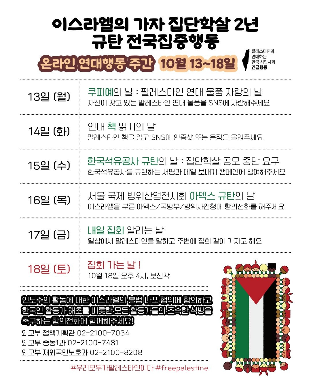 그 동안 가자 지구의 평화와 학살 중지를 위해 거의 아무 것도 하지 않았던 내가 부끄럽다. 18일 집회에는 참석하련다.